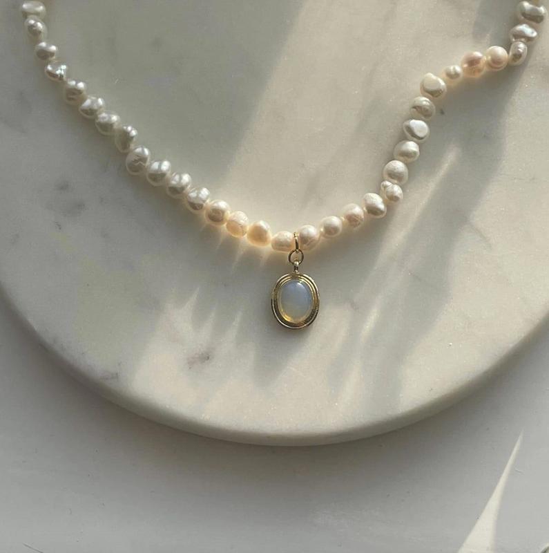 Лунный камень с перламутровым бисером из 18-каратного золота из нержавеющей стали