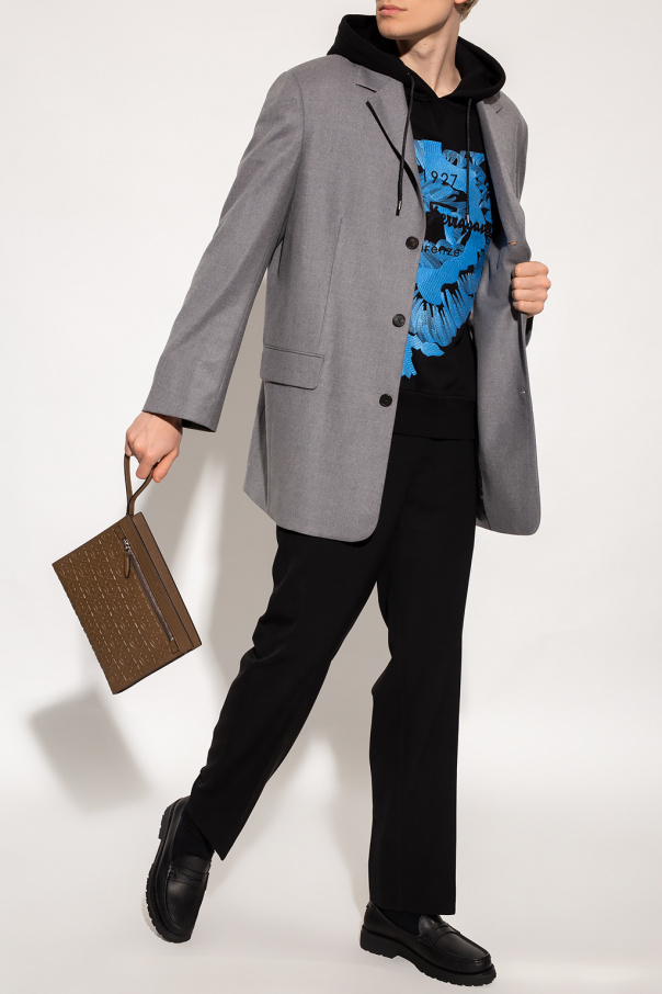 Black sweatshirt with a drawcord-adjustable hood from Salvatore Ferragamo. Crafted from cotton jersey, this style showcases elasticized trims on the edges and blue graphic embroidery on the front, created by French artist Julien Colombier.