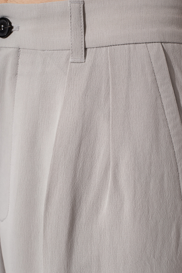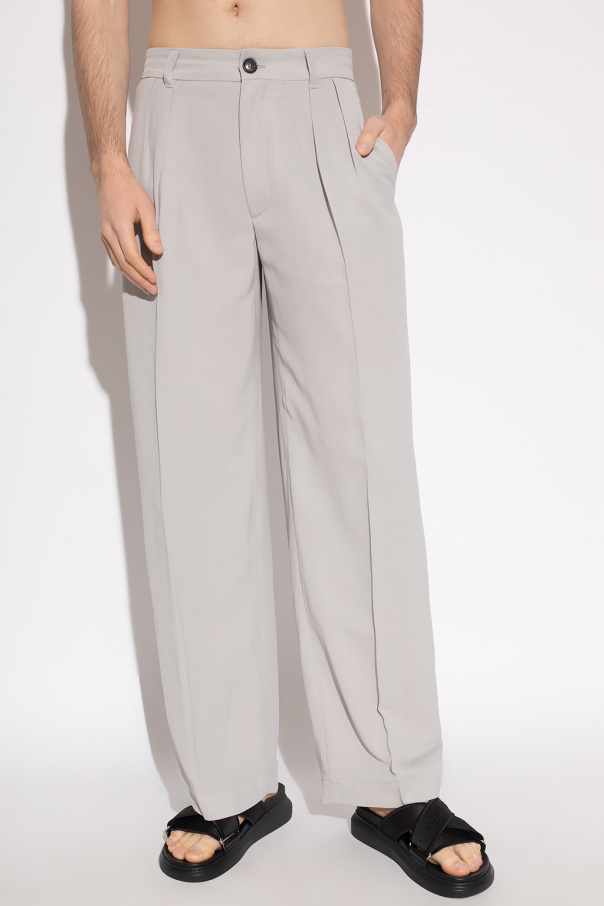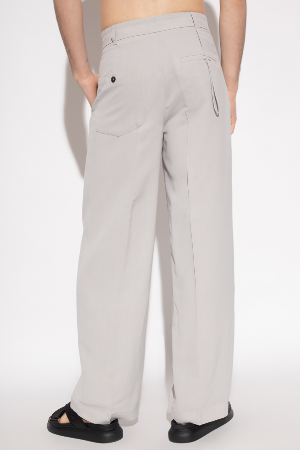 Light grey ‘Mela’ pleat-front trousers from Jacquemus. Fastened with a zip and button, this loose-fitting pair features two front pockets as well as a buttoned pocket and a pocket with a strap at the back.