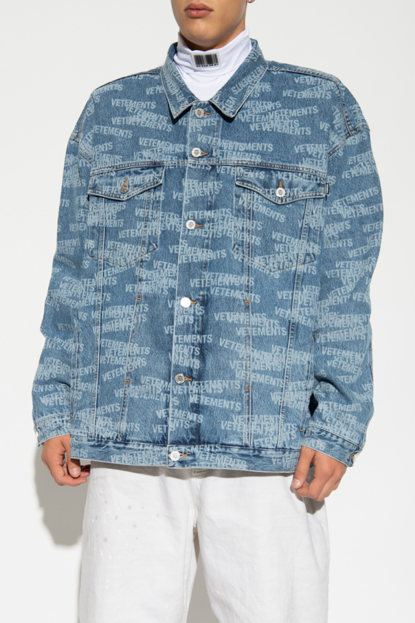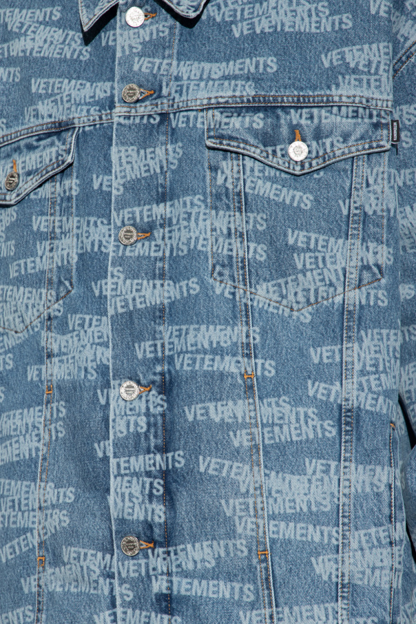 Blue denim jacket from VETEMENTS. Made of cotton, this design features button fastenings, logo pattern, two slip pockets, two flap pockets and long sleeves with buttoned cuffs.