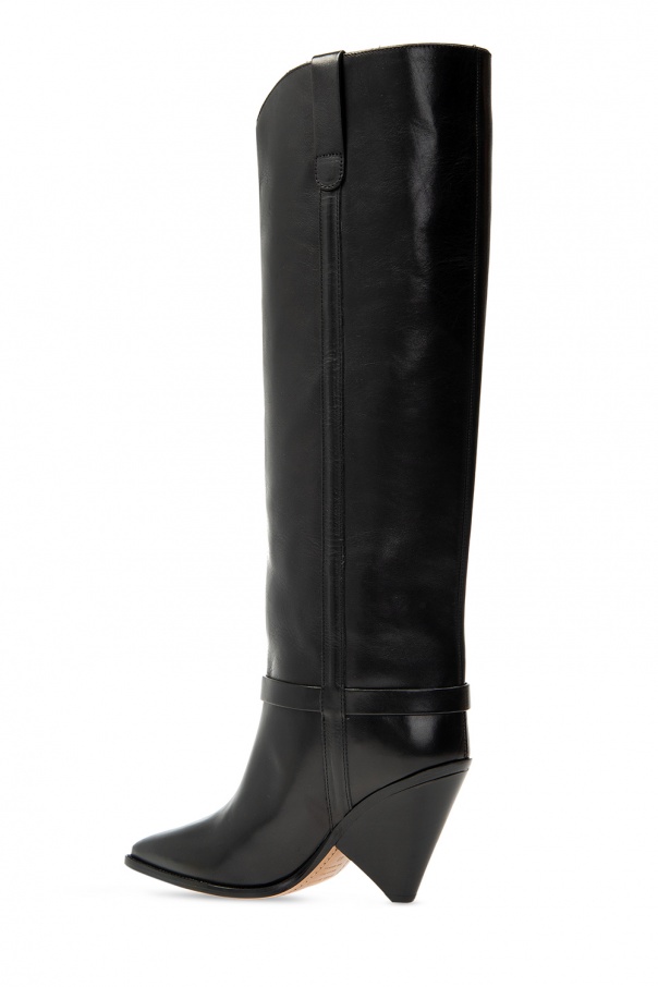 Black ‘Lenskee’ heeled knee-high boots from Isabel Marant. Crafted from calf leather, this pair has brown insole and beige leather sole.