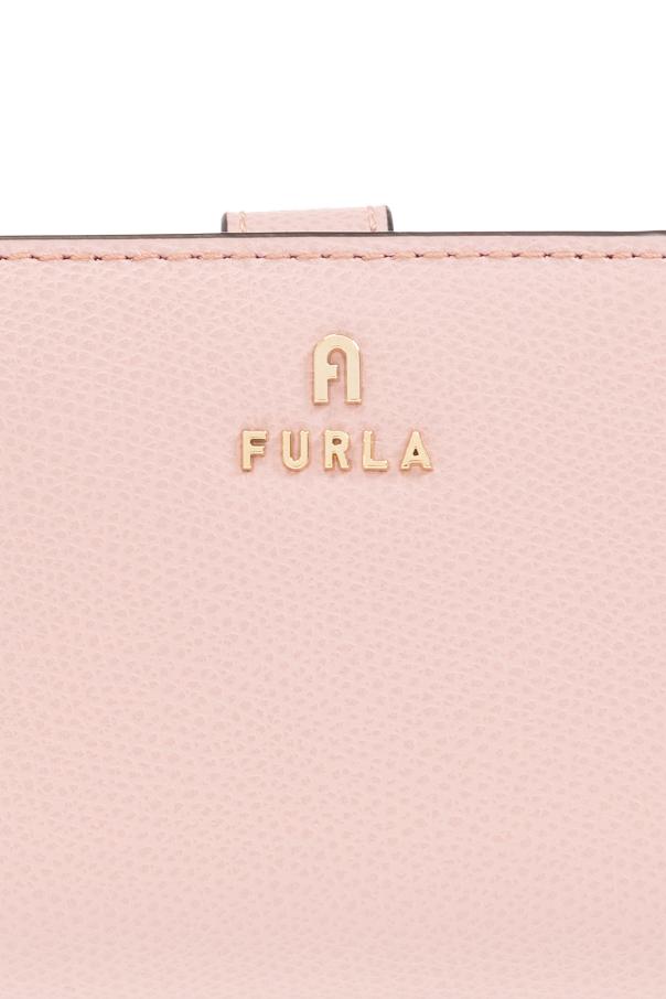Pink ‘Camelia Small’ bi-fold wallet from Furla. Made of grained leather, this item features a snap closure, logo detail, zipped coin pocket and gold-tone metal hardware as well as one bill compartment and ten card slots inside.