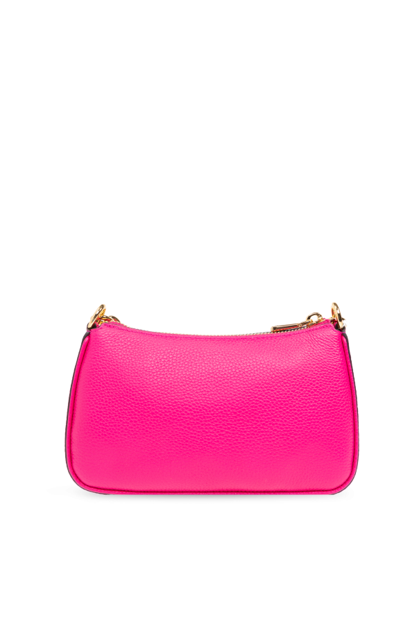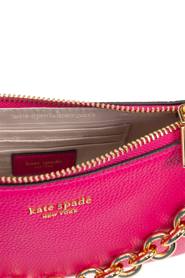 Introducing the Kate Spade Jolie Shoulder Bag, a manifestation of sophistication and vibrant allure. Crafted from premium, fine-grained leather, this exquisite piece is a testament to luxurious accessorizing. Its captivating pink hue not only draws the eye but also accentuates its exclusivity, making it a standout addition to any ensemble. The Jolie\'s classic, rounded silhouette opens to reveal a contrasting interior, meticulously lined and equipped with a main compartment secured by a zipper. Inside, you\'ll find a thoughtful organization solution including a chamber and three card slots, perfect for keeping essentials neatly arranged. Its distinctive design is further elevated by a gold chain strap, adding a touch of elegance and serving as a hallmark of the brand\'s renowned craftsmanship. Discreet yet prominent, the designer\'s name, Kate Spade, is subtly displayed on the front, symbolizing the prestige of the brand. The bag also features an adjustable strap in the same luxurious material and color, ensuring stylistic coherence and versatility in wear. Why Purchase This Product? Impeccable craftsmanship from 100% high-quality leather. Eye-catching intense pink color enhances the bag\'s exclusivity. Gold chain strap adds an elegant, sophisticated touch. Practical organization with an interior chamber and card slots. Adjustable strap for versatile styling options.