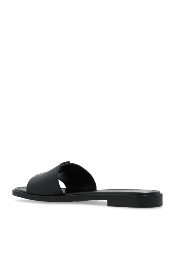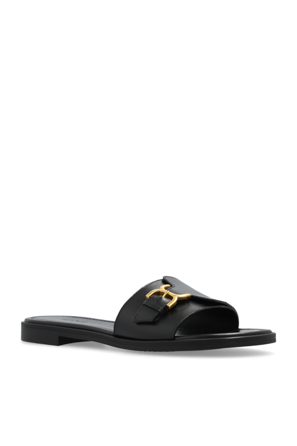 Black ‘Marcie’ slides from Chloe. Made of leather, this model sits on a black rubber sole and features a strap with a branded buckle.
