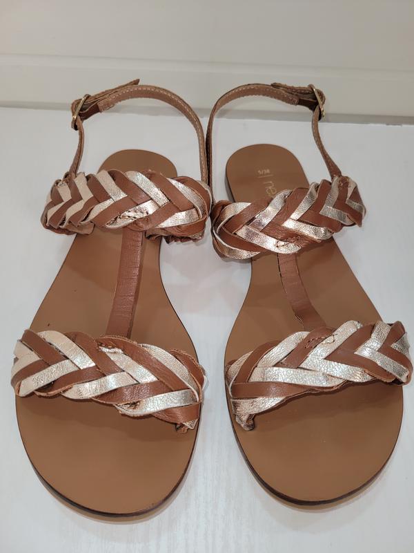 Натуральной кожей отделаны изнутри верха и стельки, верх - косички - эко.