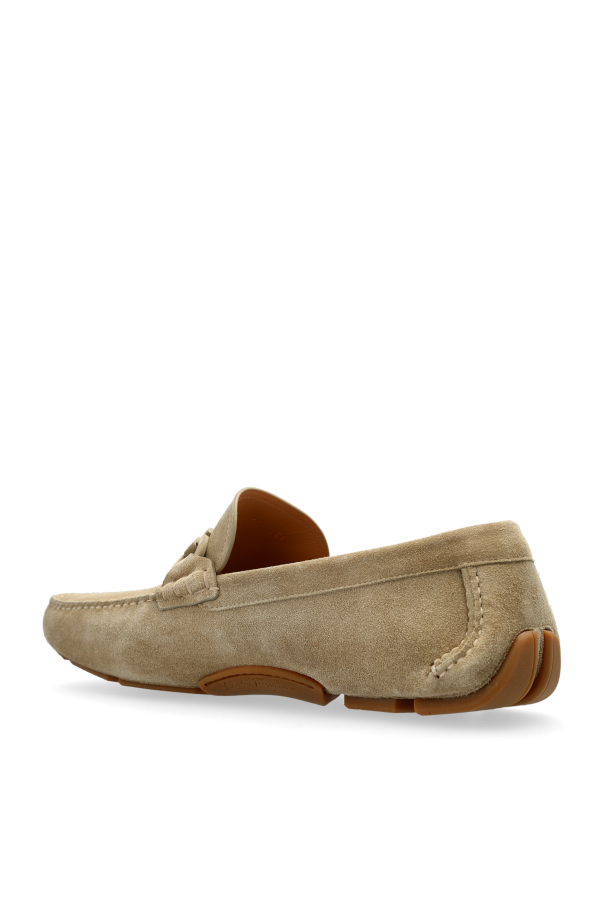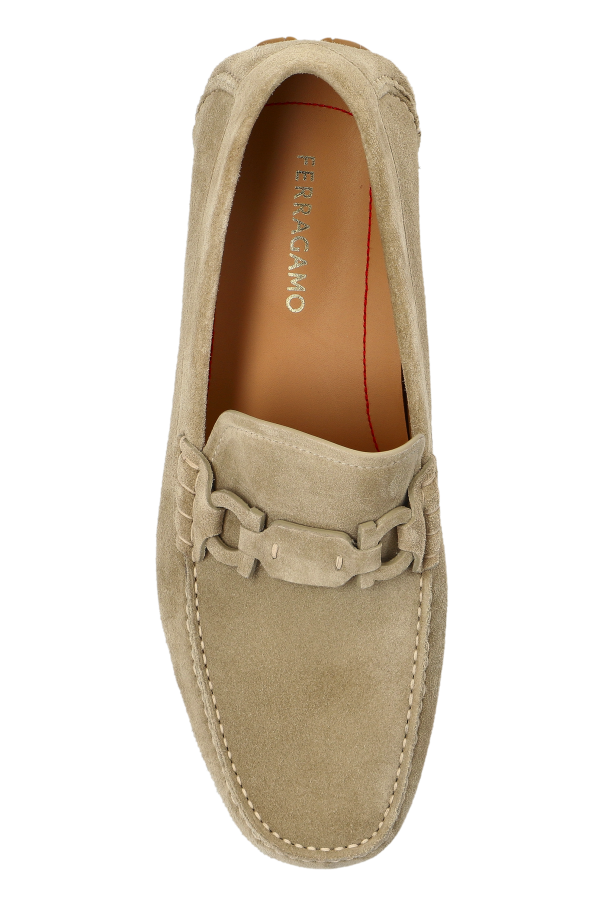Introducing the Byte loafers from the illustrious FERRAGAMO collection, a paragon of sophistication and refined elegance. Crafted meticulously from sumptuous suede, these loafers boast a classic silhouette with a rounded toe and an exquisite decorative lace adorning the vamp, infusing them with a distinctive charm. The interior, lined with premium leather, provides an unparalleled sense of luxury and comfort. The visible stitching around the edges not only accentuates their superior craftsmanship but also enhances their aesthetic allure. The insole is proudly embossed with the FERRAGAMO insignia, a hallmark of authenticity. Equipped with a durable rubber sole featuring anti-slip elements, these loafers ensure stability and comfort, making them an impeccable choice for sophisticated ensembles. In a versatile beige-cream hue, they seamlessly complement both formal and casual attire, embodying the perfect fusion of style and practicality. Why Choose This Product? Exquisite suede exterior for a touch of elegance Premium leather interior for ultimate comfort Decorative lace and visible stitching for added character Anti-slip rubber sole for enhanced stability Designed by the renowned FERRAGAMO, synonymous with luxury