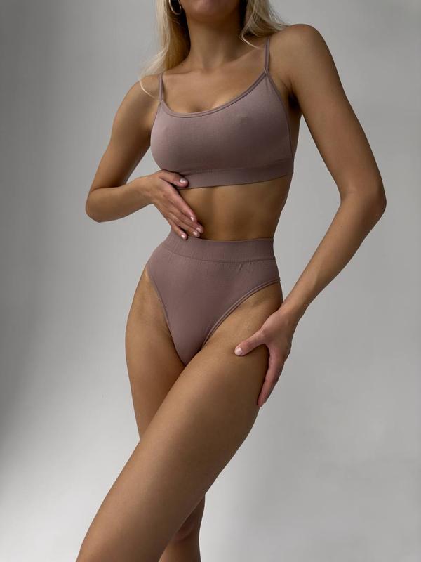 Безшовний комплект: топ на тонких бретелях + стрінги в асортименті.