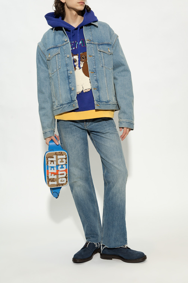 Navy blue shoes from Gucci. Made of suede with brogue details, this lace-up model sits on a brown and beige rubber sole and showcases a gold-tone logo at the back.
