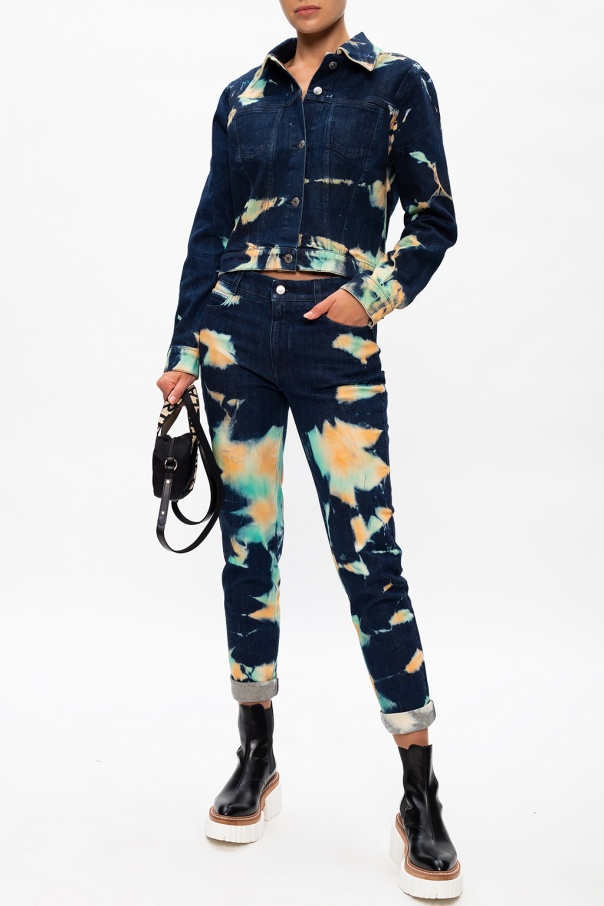 Navy, green and orange jeans from Stella McCartney. Fastened with a button, this five pocket design is complete with a tie-dye effect and a light brown logo patch.