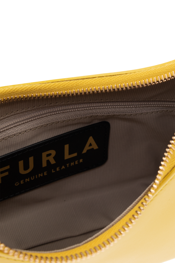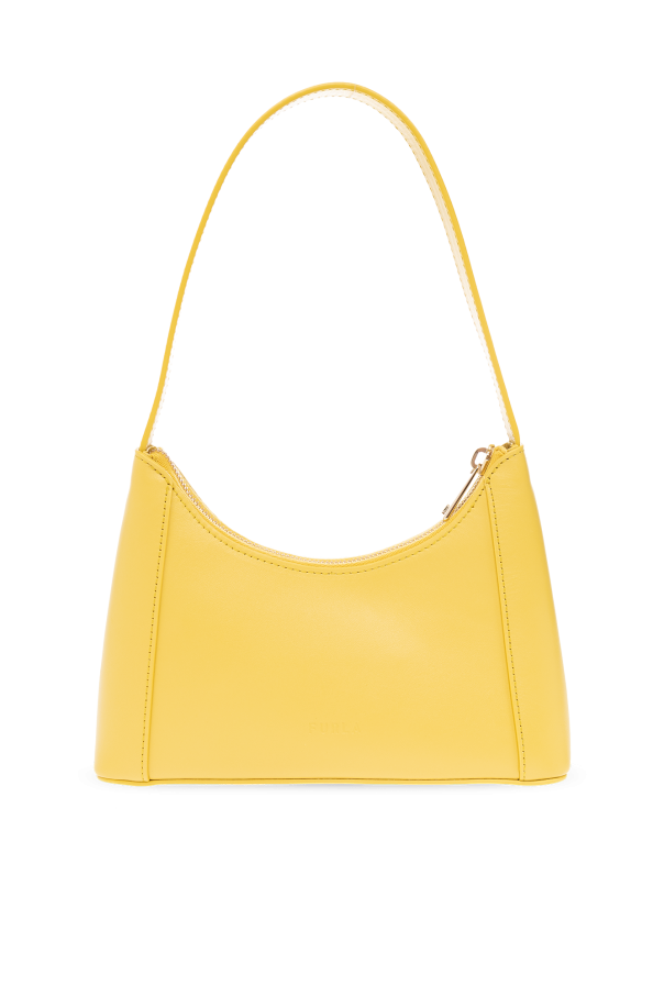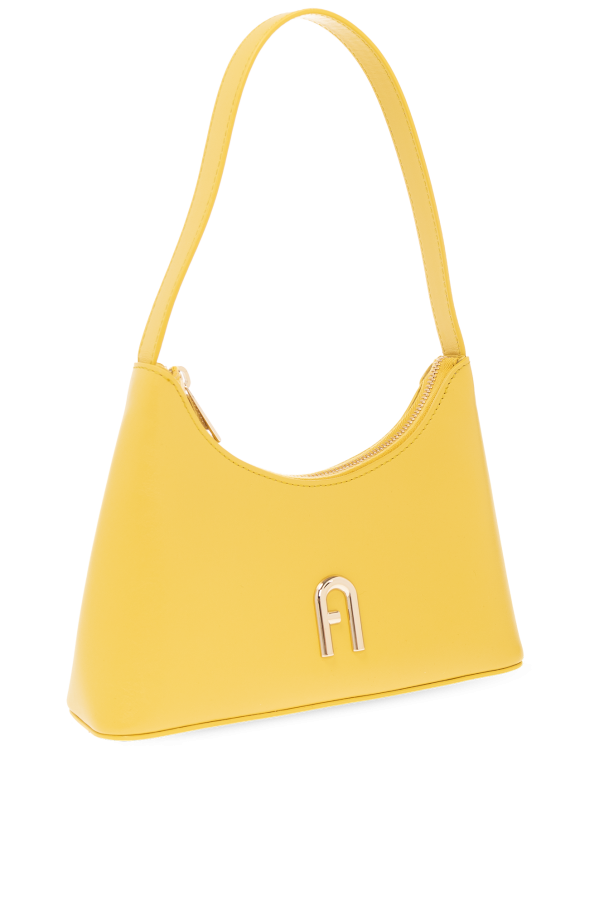 Yellow ‘Diamante’ shoulder bag from Furla. Made from leather, this design fastens with a zip and showcases the brand\'s logo. It is complete with a half-round handle, gold-tone metal hardware and one internal compartment with one zip pocket and one slip pocket.
