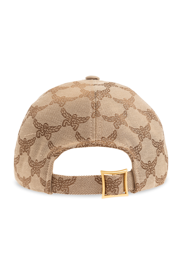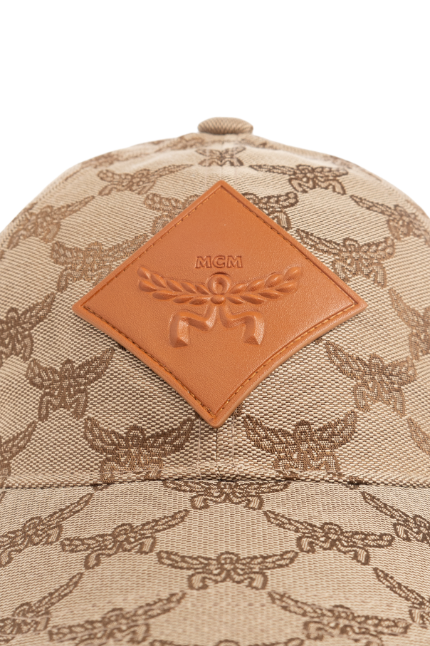Beige and brown baseball cap from MCM. Made from monogrammed canvas, this item adjusts via a buckle strap on the back and features a logo patch on the front.