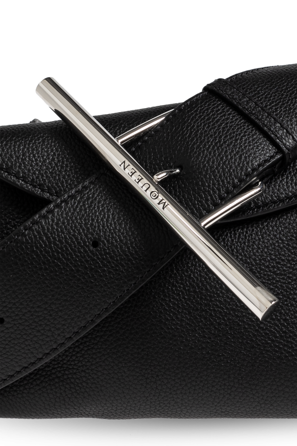Introducing the Alexander McQueen Black Belt Bag, a paragon of elegance from our exclusive collection. This sophisticated accessory, crafted from premium calfskin leather, epitomizes modern luxury while honoring the rich heritage of British tailoring. The bag boasts a sleek rectangular shape with subtly rounded edges, exuding a timeless allure. Its smooth, unadorned surface highlights the exquisite texture of high-quality leather, ensuring durability against scratches and wear. The wide, adjustable strap guarantees both comfort and a perfect fit for any occasion. A distinctive feature of this bag is its polished metal bar inscribed with the designer\'s name, \"MOUFEN\", which serves as a magnetic clasp, adding a touch of contemporary elegance. Inside, the spacious compartment is lined with a black fabric and includes a zippered pocket for small essentials. This bag, with its understated luxury and practical design, is adorned with the unmistakable Alexander McQueen logo, symbolizing authenticity and prestige. The polished metal accents further enhance its luxurious appearance, making it a versatile yet stylish addition to your daily ensemble. Why Choose This Product? Exquisite craftsmanship with high-quality calfskin leather. Adjustable strap for personalized comfort. Elegant magnetic closure with designer branding. Spacious interior with a secure zippered pocket. Timeless design suitable for any occasion.