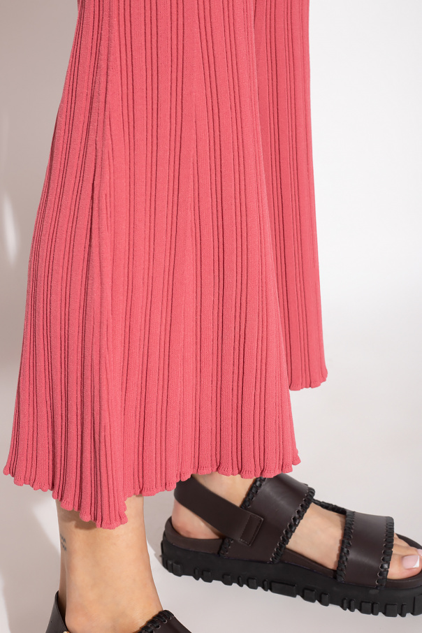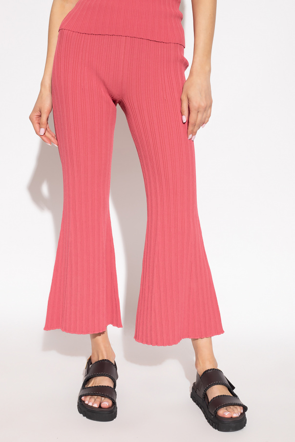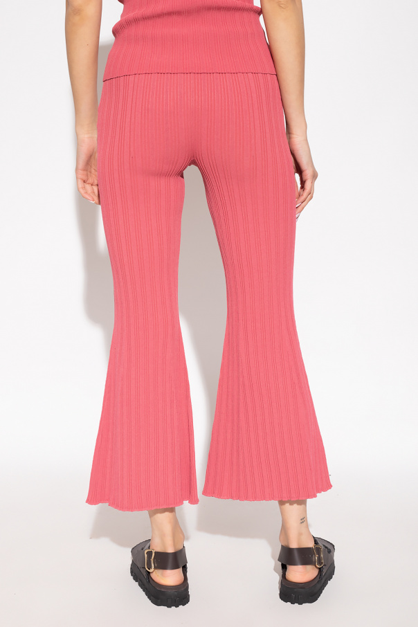 Pink ribbed trousers from Proenza Schouler White Label. This flared pair is complete with an elastic waistband and decorative trimming.