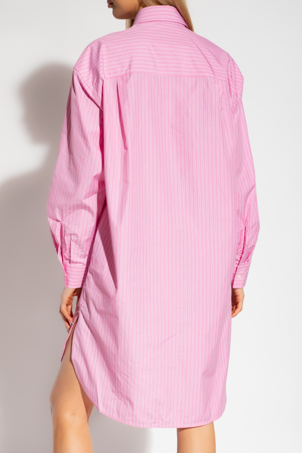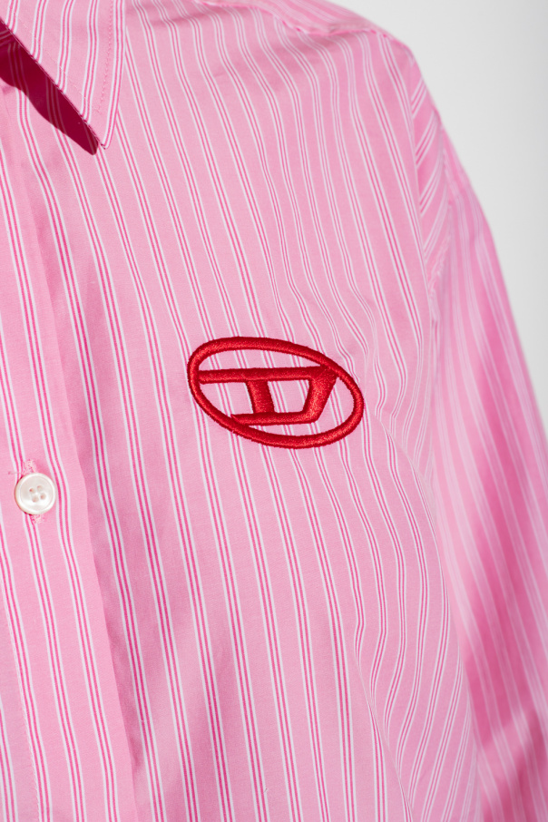 Pinkish white ‘D-LUNAR-STR’ shirt dress from Diesel. Made of cotton, this style showcases a stripe pattern and an embroidered logo. It is complete with button fastenings, two slip pockets, a double bottom split and long sleeves with button cuffs.