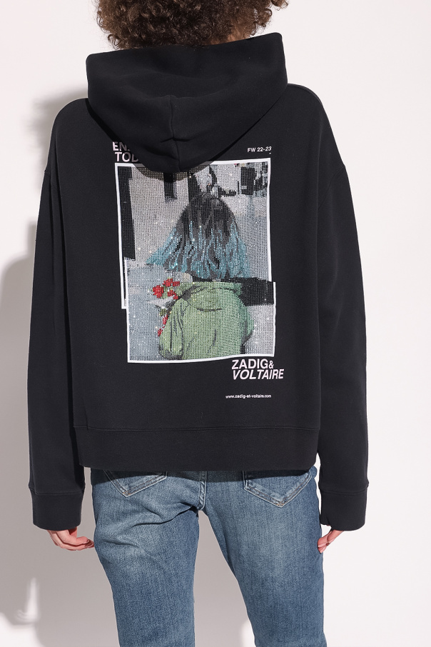Black hoodie from Zadig & Voltaire. Crafted from cotton jersey, this style features a white graphic print with the brand\'s logo, a kangaroo pocket and a ribbed bottom hem and cuffs.