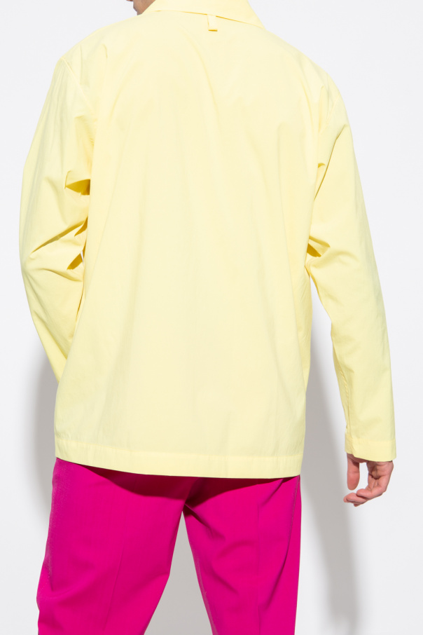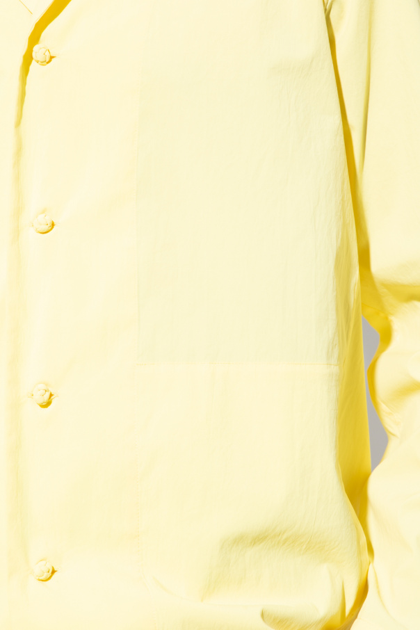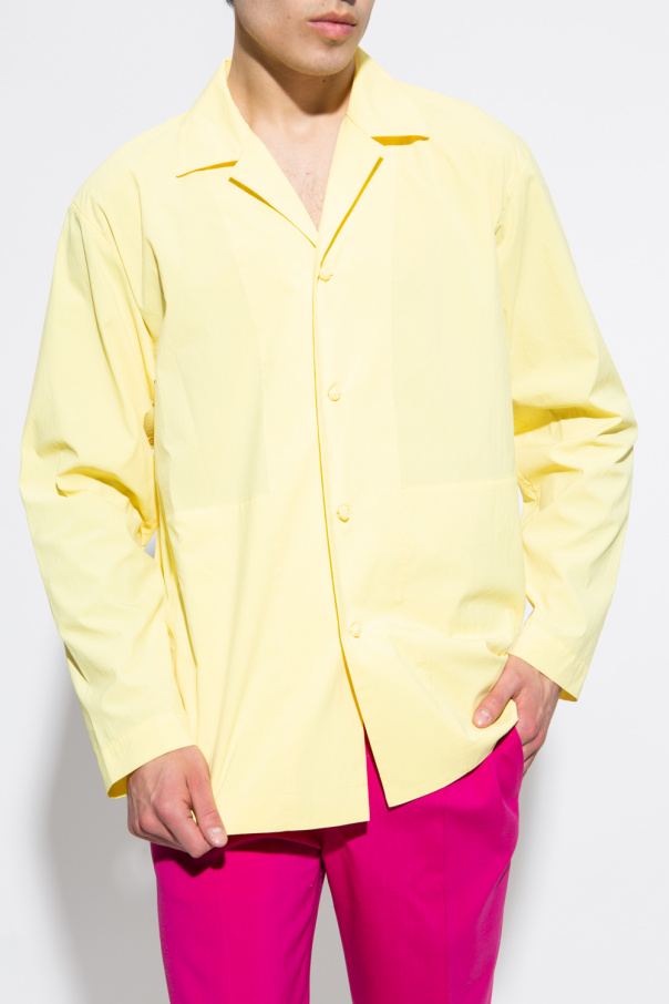 Yellow shirt from Issey Miyake Homme Plisse. Fastened with knot-shaped buttons, this style features long sleeves and two frontal pockets.
