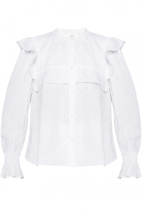 White shirt from Isabel Marant Étoile. Crafted from linen, this style features button fastenings, decorative embroideries and blouson sleeves with elasticated cuffs.