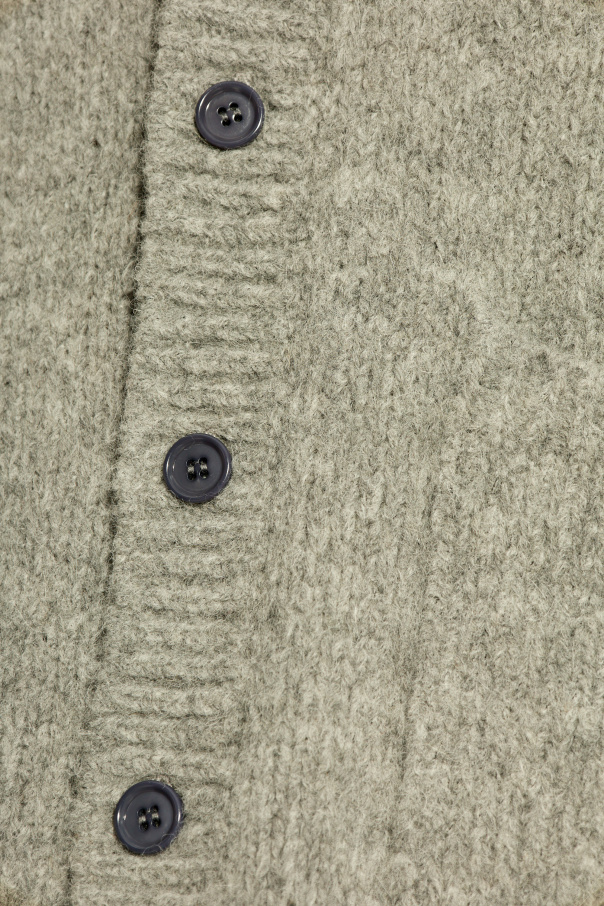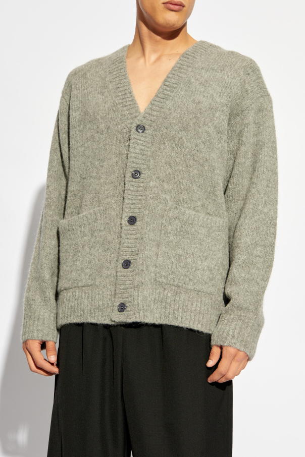 We present to you an exclusive gray cardigan with button closure, directly from the men\'s knitwear collection by the renowned designer Dries Van Noten. This unique cardigan combines a classic simple cut with luxurious materials, creating an unrivaled option for the elegant man. Made from a high-quality blend of wool, Merino wool, and polyamide, the cardigan not only provides warmth but also exceptional wearing comfort. The delicate, fluffy fabric emphasizes its refined character, while the deep V-neck adds elegance. The cardigan features five dark buttons and two large patch pockets at the front, enhancing its functionality and style. Long sleeves, carefully fitted to the silhouette, and ribbed edges on the cuffs, hem, and button placket give it a neat and elegant look. Why should you buy this product? High-quality materials: wool, Merino wool, polyamide Elegant, classic cut with a deep V-neck Functional front pockets Meticulously finished ribbed edges Design by the acclaimed fashion master, Dries Van Noten