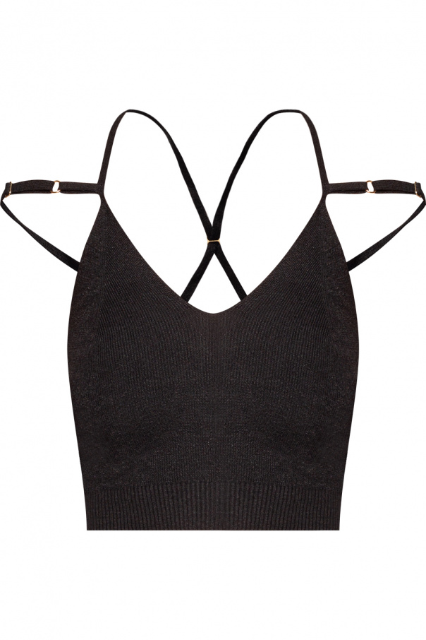 Black ‘La Maille Aneto’ top from Jacquemus. Crafted from linen with a cropped silhouette, this style features a V-shaped neckline and adjustable shoulder straps.