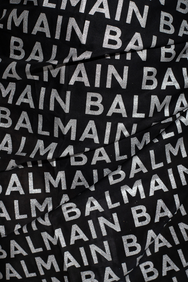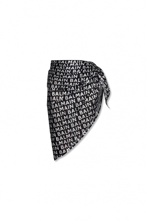 Black pareo from Balmain. Made of cotton, this design is decorated with a silver-tone logo print.