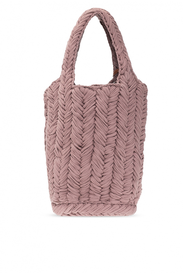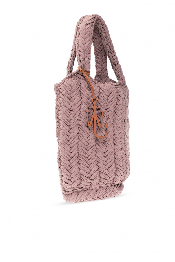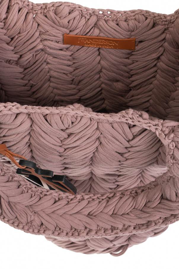 Greyish purple ‘Knitted’ shopper bag from JW Anderson. Crafted from organic cotton, this design features two half-round handles, one internal compartment and an included logo pendant.