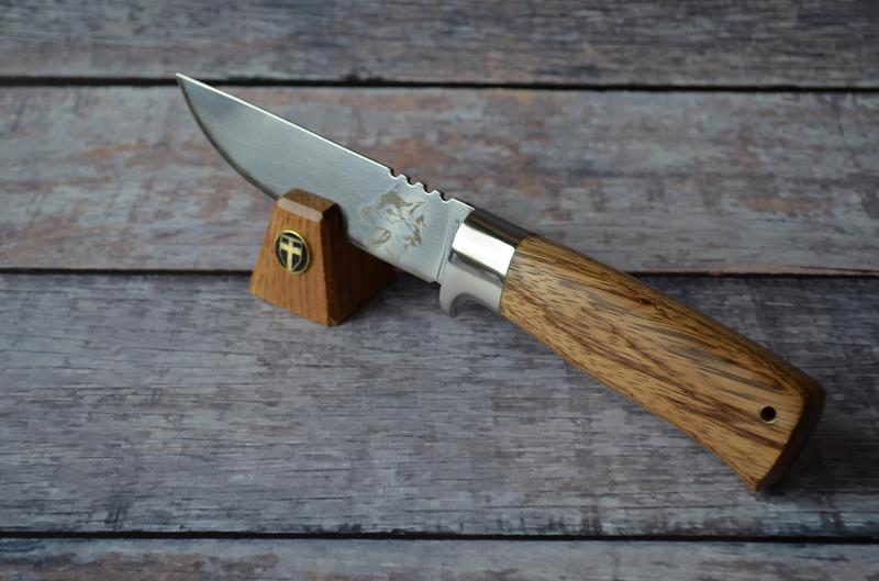 точится, как в домашних, так и в полевых условиях.Рукоять ножа сделана из дерева, прошедшего обработку специальной пропиткой,