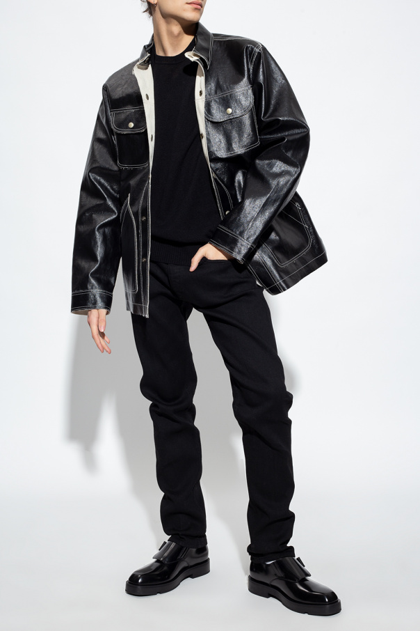 Black monk-strap shoes from Givenchy. Made of calf leather, this model features a square toe, a black rubber sole and a snap fastener with a distinctive silver-tone buckle accentuated with a logo.