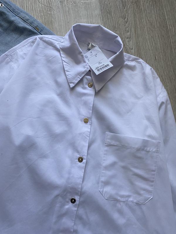 Шикарная белоснежная рубашка с золотыми пуговицами