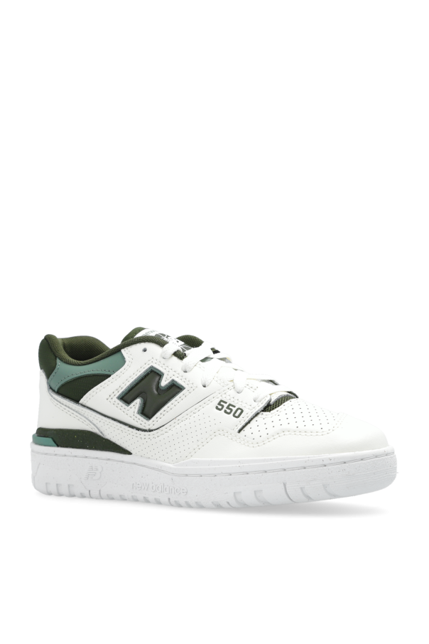 Cream and dark green ‘550’ sneakers from New Balance. Crafted from leather and fabric, this lace-up model sits on a white rubber sole and showcases a logo application and series symbol.