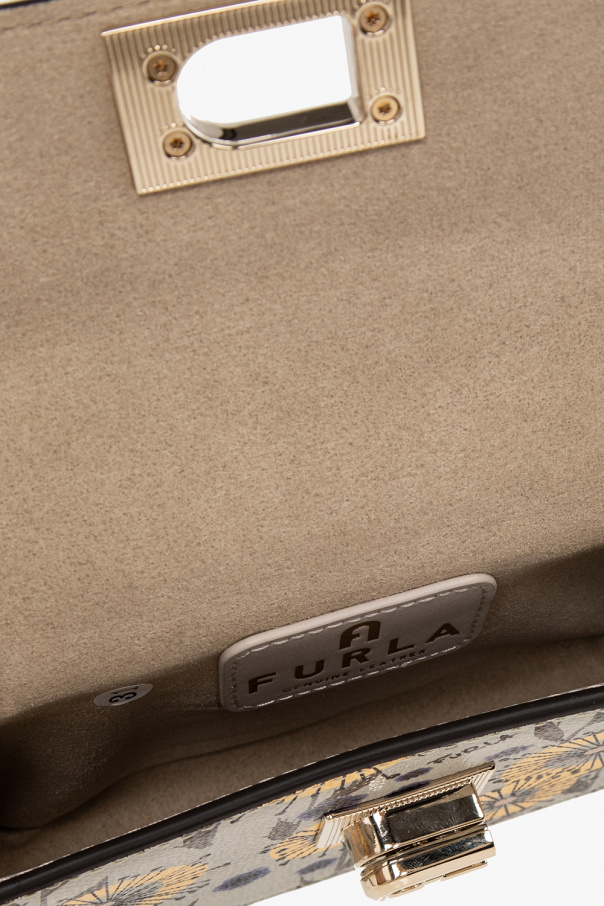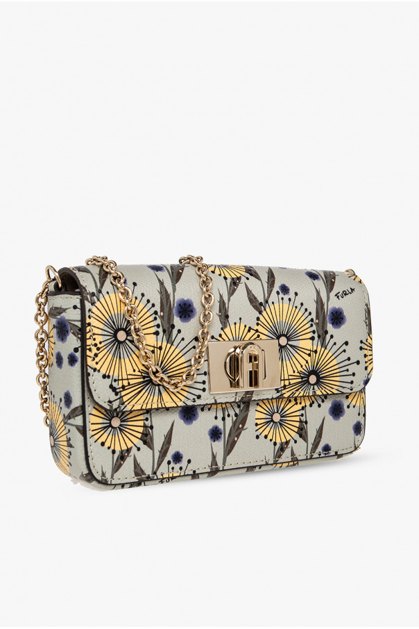 Grey ‘1927 Mini’ shoulder bag from Furla. Made of leather, this model features a multicolored floral print, decorative twist closure with an Arch logo, gold-tone metal hardware and one internal compartment with three card slots.