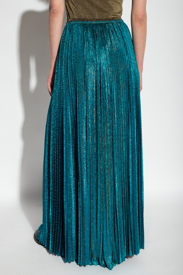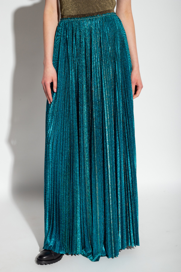 Blue and gold-tone skirt from Forte Forte. Made with a glistening finish, this style features pleat details and an elastic waistband.