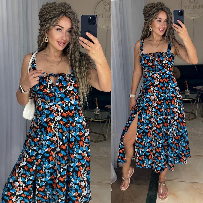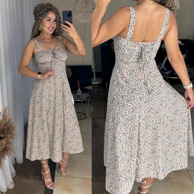 Розміри 42-44, 46-48,50-52Ідеальний варіант на спекотне літо 😉 Сарафан на брителях, збоку потайна змійка, на спинці зав'язки.