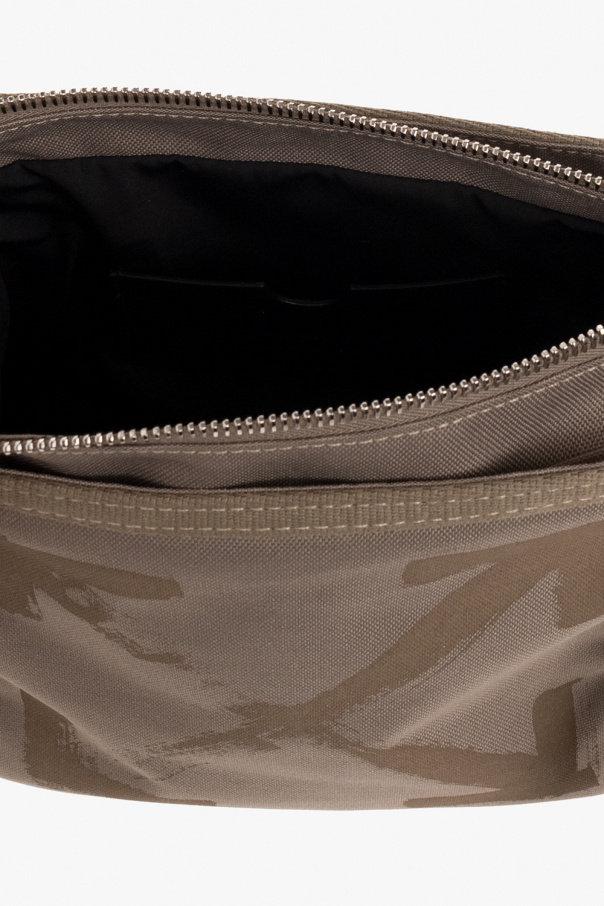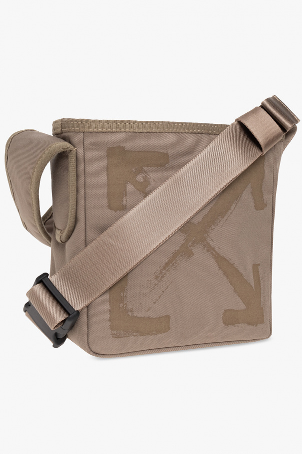 Brown shoulder bag from Off-White. Made of fabric and leather, this model is complete with a zip fastening, the brand’s signature arrow print, adjustable shoulder strap with a logo, silver-tone metal hardware and one internal compartment with one card slot.