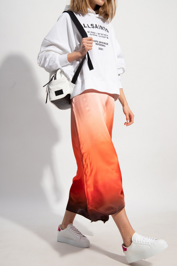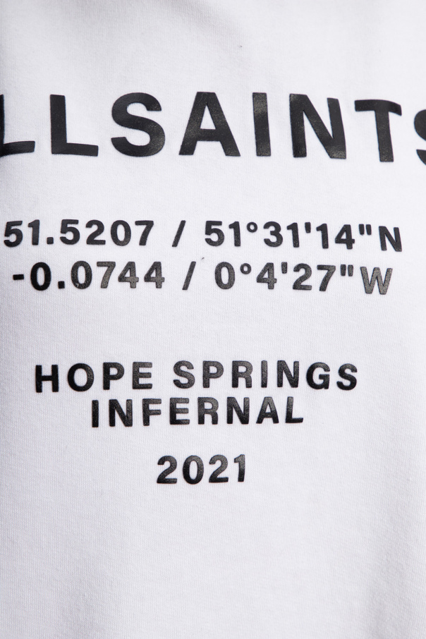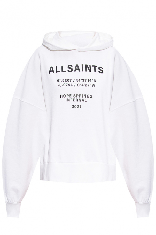 White ‘Co-Ordinates’ hoodie from AllSaints. Made of cotton jersey, this style showcases a black graphic print with the brand\'s logo and a ribbed bottom hem and cuffs.