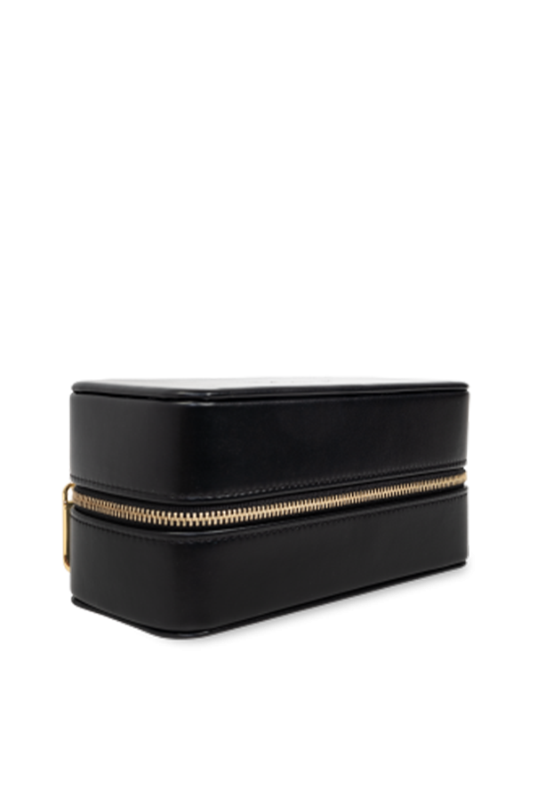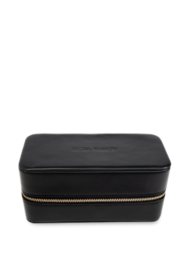 Introducing the epitome of sophistication and functionality - the Linda Farrow Black Eyeglass Case. Crafted with meticulous attention to detail, this one-piece accessory is enveloped in the finest 100% vegan leather, showcasing an allegiance to both luxury and ethical fashion. Its sleek black exterior, characterized by a rectangular silhouette with softly rounded corners, exudes an air of understated elegance. The case\'s allure is further enhanced by a horizontal gold zipper that gracefully outlines the upper edge, adding a touch of opulence without compromising its minimalist design. Upon unzipping, one is greeted by a contrasting interior in a delicate beige hue, providing a visually pleasing contrast. An innovative, elastic eyeglass holder nestles within, promising to secure eyewear of varying sizes with ease. Every angle of this exquisite case reveals thoughtful design elements, from the high-quality finish of the zipper to the additional gold accent that serves as a decorative handle or charm, elevating its overall aesthetic. The pièce de résistance is undoubtedly the subtly embossed or engraved signature of Linda Farrow on the lower exterior, a testament to its exclusive origin and designer craftsmanship. Why Purchase This Product? Elegant design with minimalist aesthetics and luxurious gold details Made from high-quality, ethical 100% vegan leather Flexible eyeglass holder accommodates various sizes Exclusive branding confirms its designer pedigree