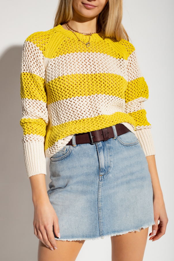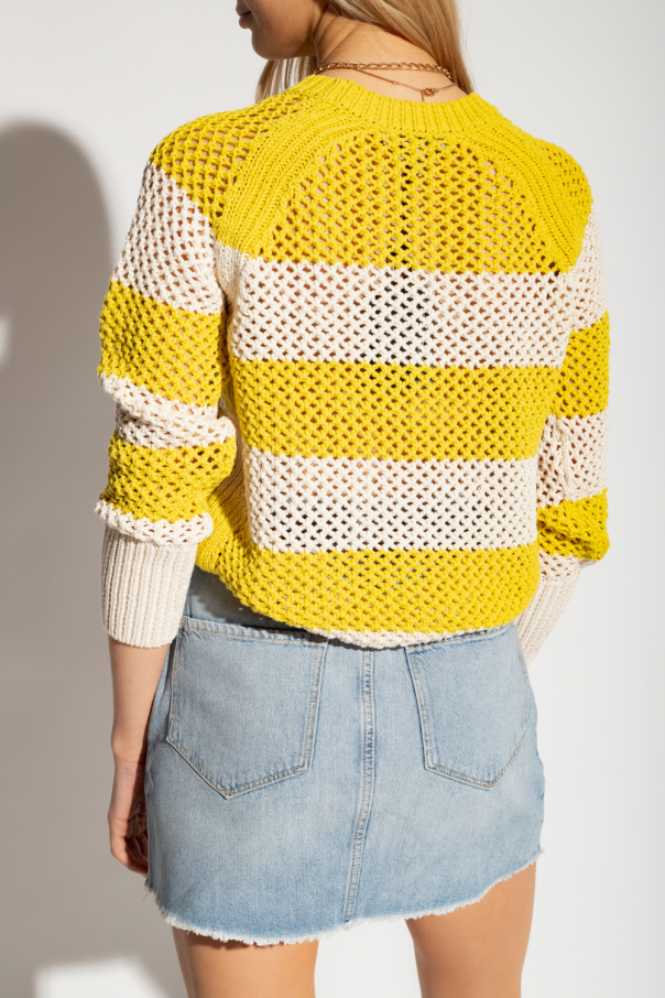 Yellow and cream ‘Lou’ sheer crewneck sweater with long sleeves from AllSaints. Made of cotton.