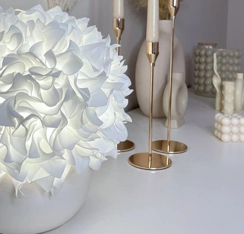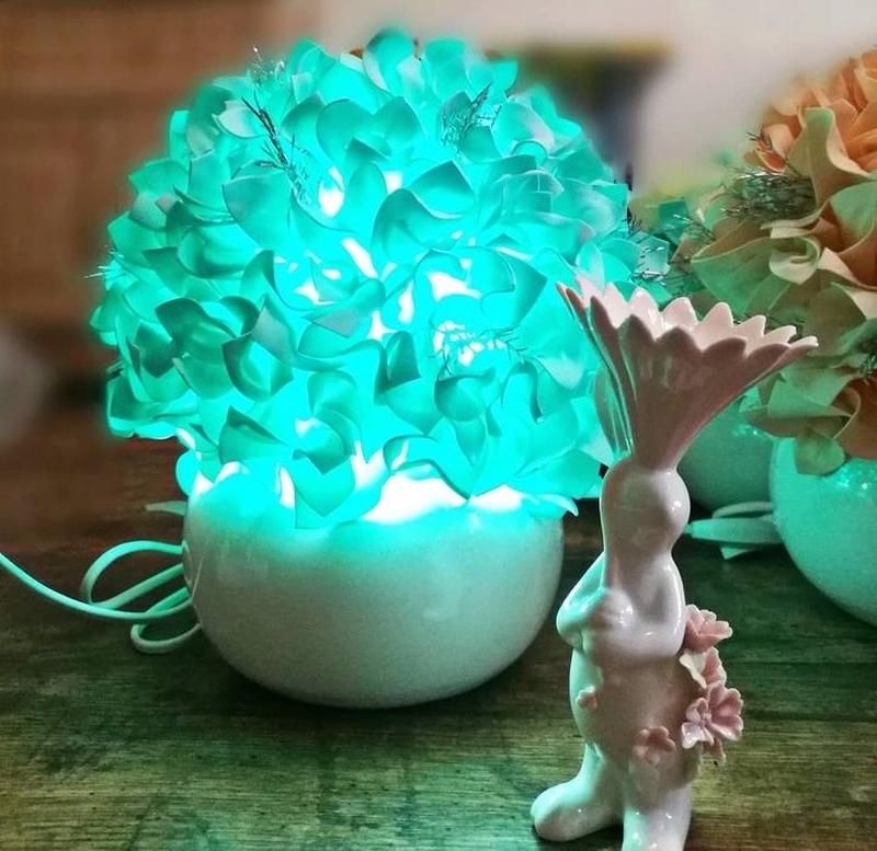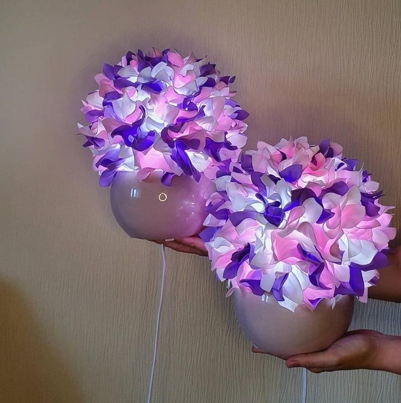 Когда свет не включен, лампа представляется в виде букета. При включенном свете, за счет выделяемого тепла, «цветок распускается». Данный элемент декора можно заказать в любом цвете!