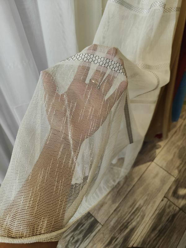 Очень красивая ткань, дополняющая в интерьере современный стиль. Совершенно не капризна в уходе, можно стирать в стиральной машинке, гладить можно сразу после стирки, или сразу повесить на карниз, ткань тоненькая очень быстро сохнет.