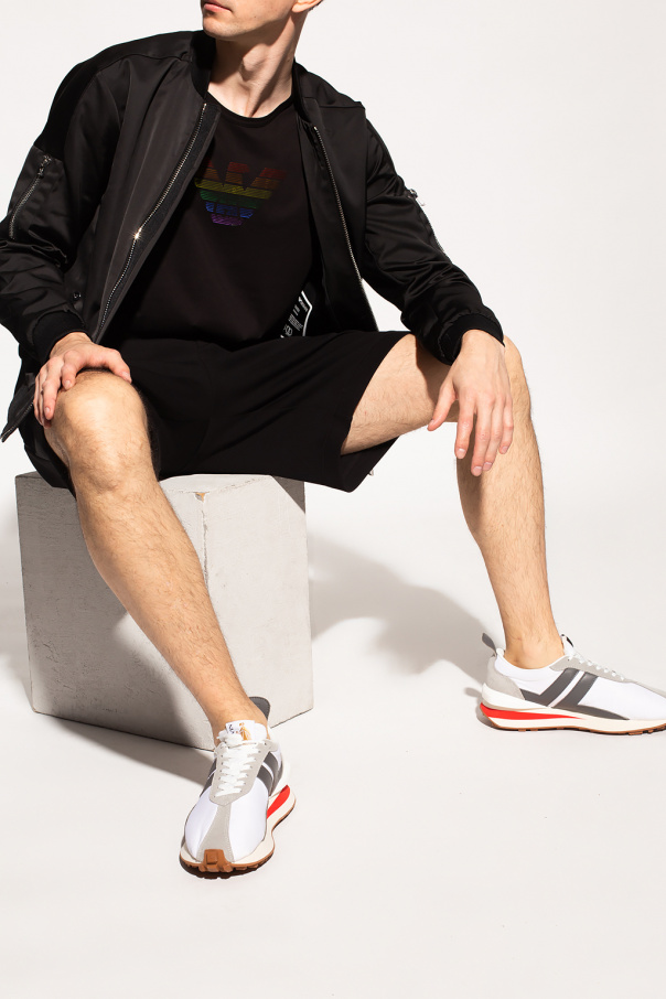 Black crewneck tank top from Emporio Armani. Crafted from cotton, this style showcases a colourful logo appliqué and an elasticated collar.