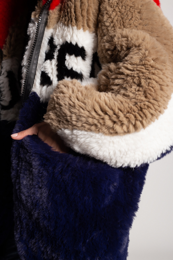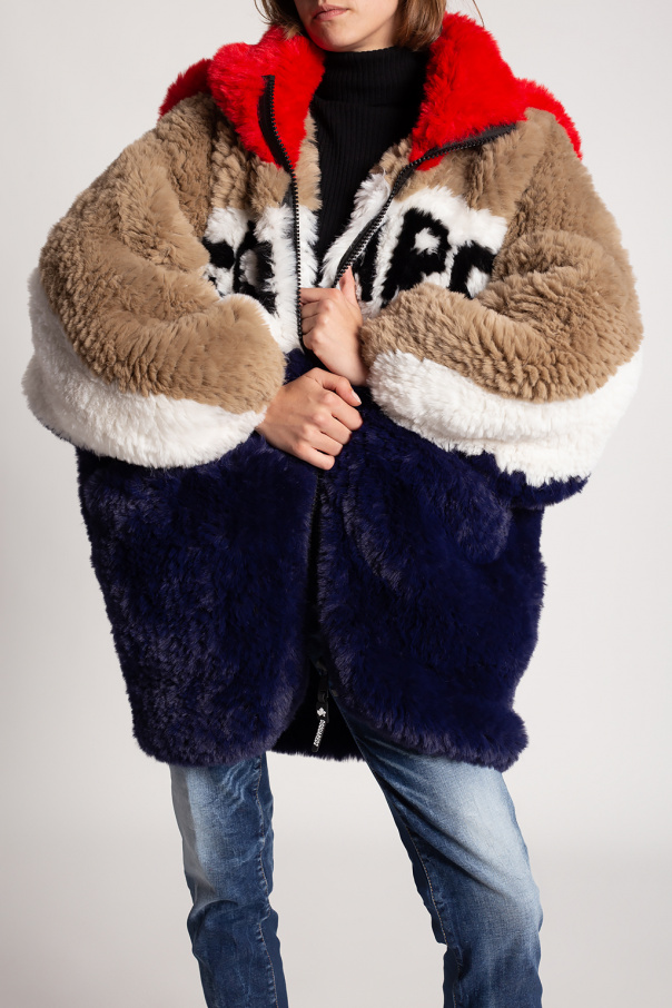 Multicolored furry jacket from Dsquared2. Fastened with a zip, this garment features a black logo detail, two front slip pockets and a detachable hood.