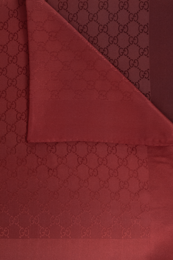 Behold the sumptuous Silk Scarf by the illustrious Gucci, a piece that epitomizes opulence and sophistication. This exquisite scarf, rendered in a rich burgundy hue, is crafted from the finest silk, offering a sensuous touch and an air of luxury. The scarf features an elegant design adorned with the repeated motif of the designer\'s logo, a hallmark of the brand\'s distinctive identity. Its generous size affords versatility, allowing it to be styled in myriad ways, as demonstrated in its chic neck-tie presentation. This creation, under the visionary direction of creative director, embodies the brand\'s innovative and eclectic ethos, seamlessly blending contemporary aesthetics with superior Italian craftsmanship. Why Choose This Product? Crafted from 100% high-quality silk. Features an iconic designer logo motif. Offers versatile styling options. Embodying the innovative spirit of creative director’s Gucci. A luxurious addition to any wardrobe.