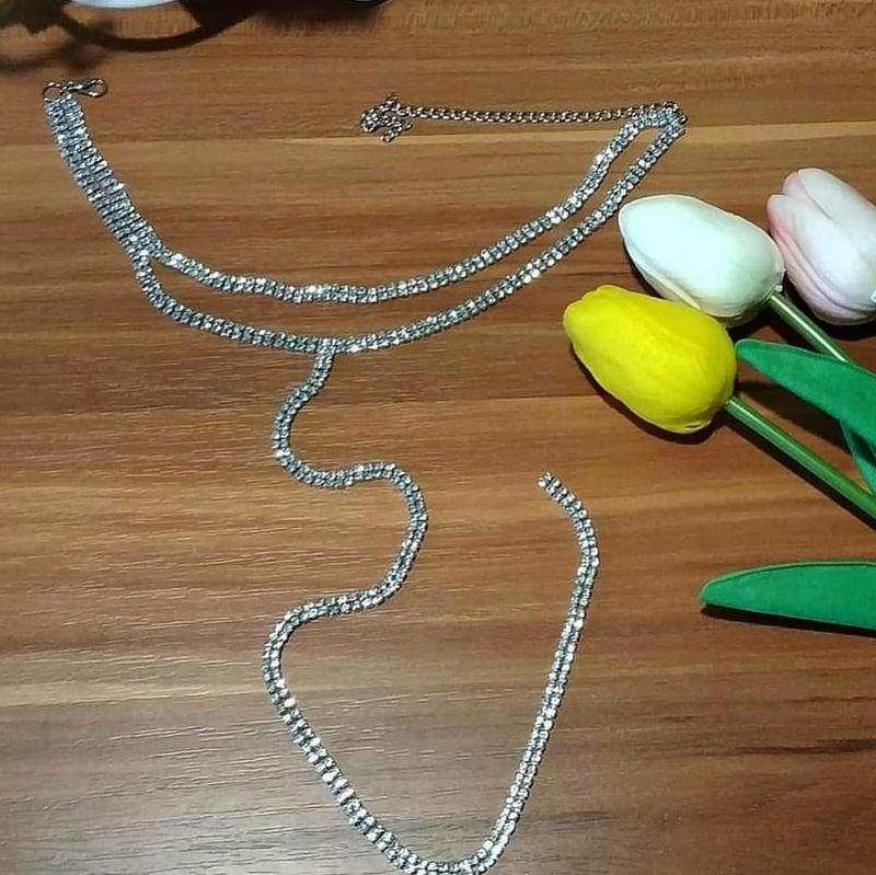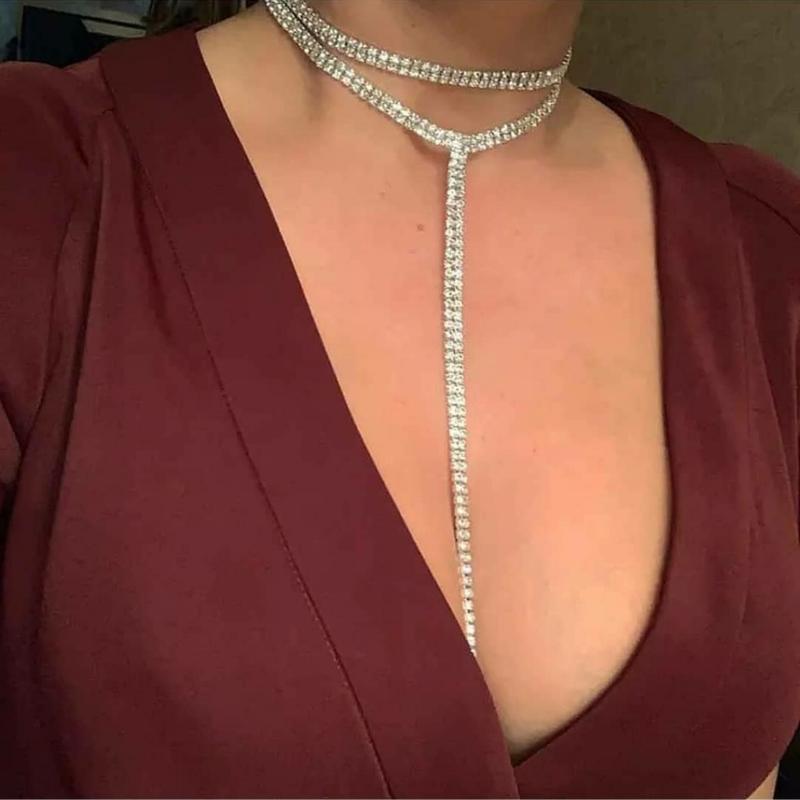 Шикарный двойной чокер на шею, украшенный камнями.