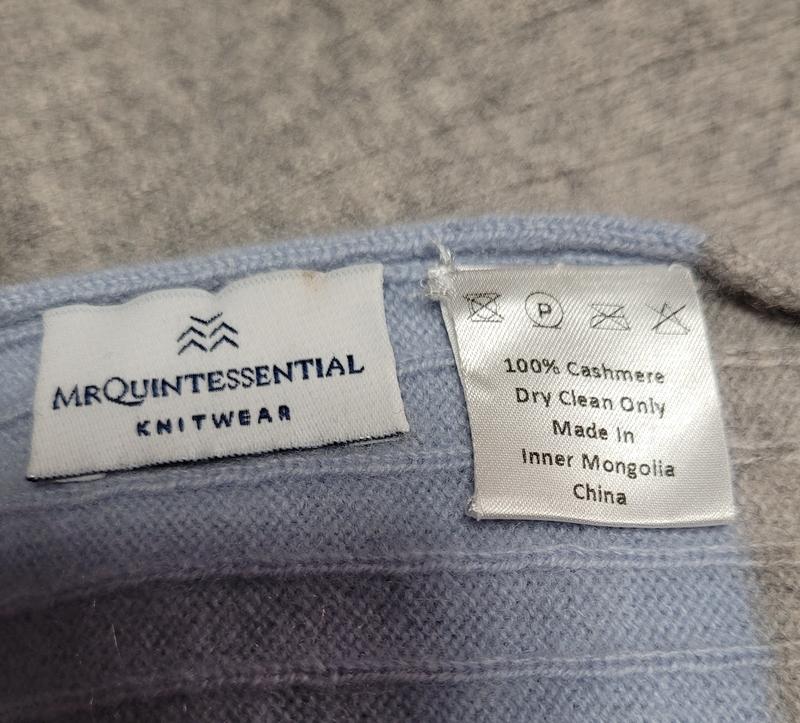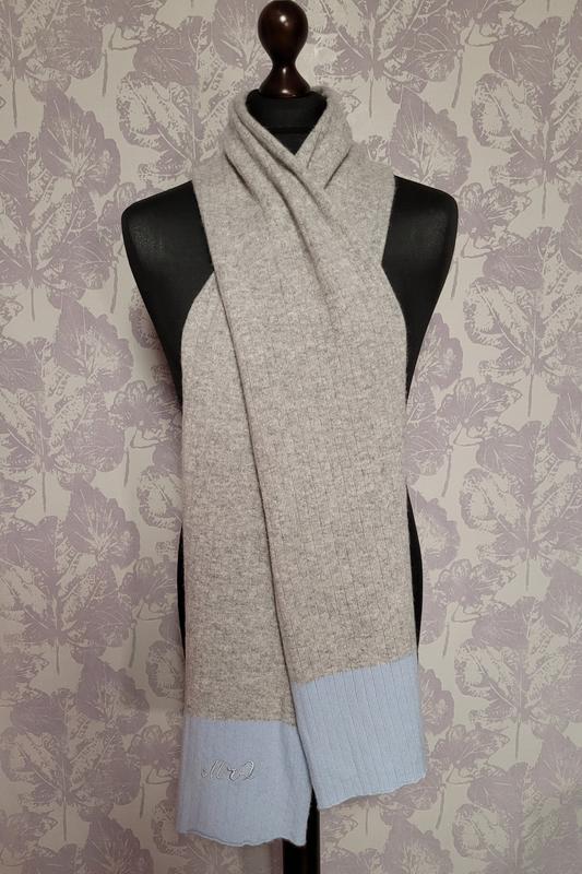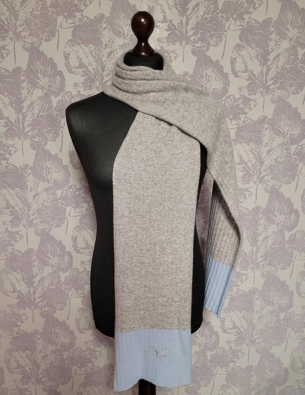 Кашемировый шарф английского бренда Mr. Quintessential, цвет: сочетание светло-серого и голубого, состав -100% кашемир, производство внутренняя Монголия (Китай), замеры (длина 1.90, ширина 23.5). Состояние идеальное.