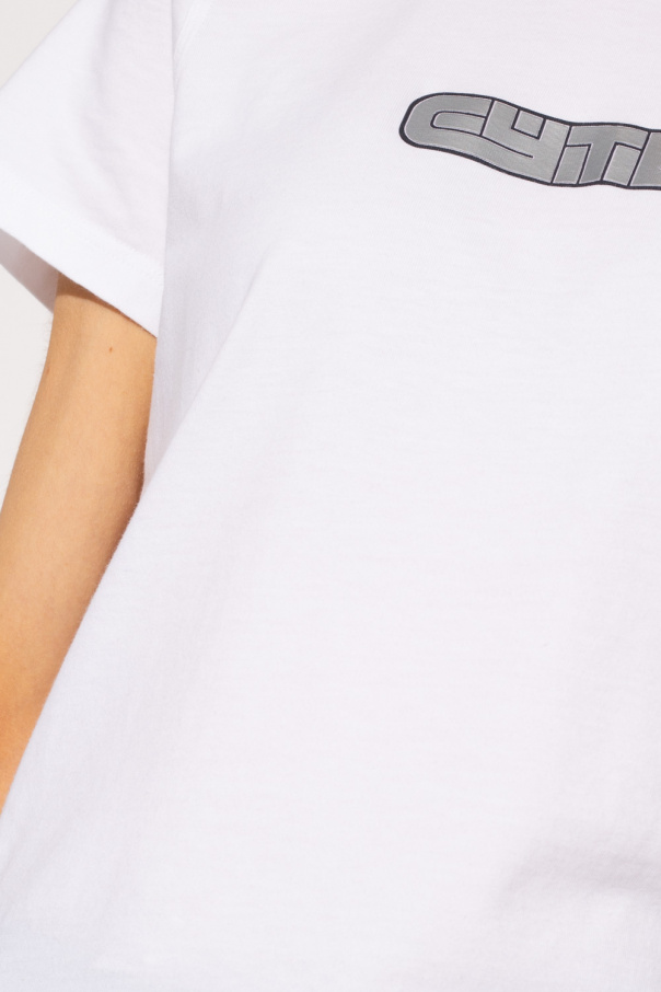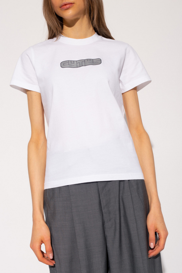 White ‘Eden’ T-shirt from Eytys. Crafted from organic cotton, this short sleeve design features a silver-tone and black logo and a ribbed crew neck.