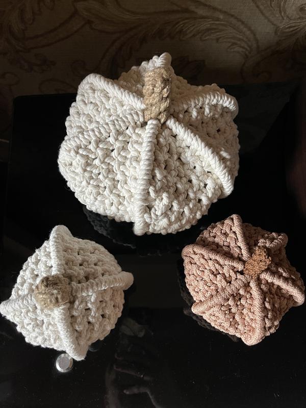 Материал: полиэфирный и хлопковый шнуры, джутовая веревка.Большой молочного цвета(16.5см х 22см)- 480 грн.