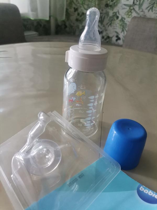 Детская стеклянная бутылка на 120 мл. 2 B новые соски на 0+, ребенок не ел из них