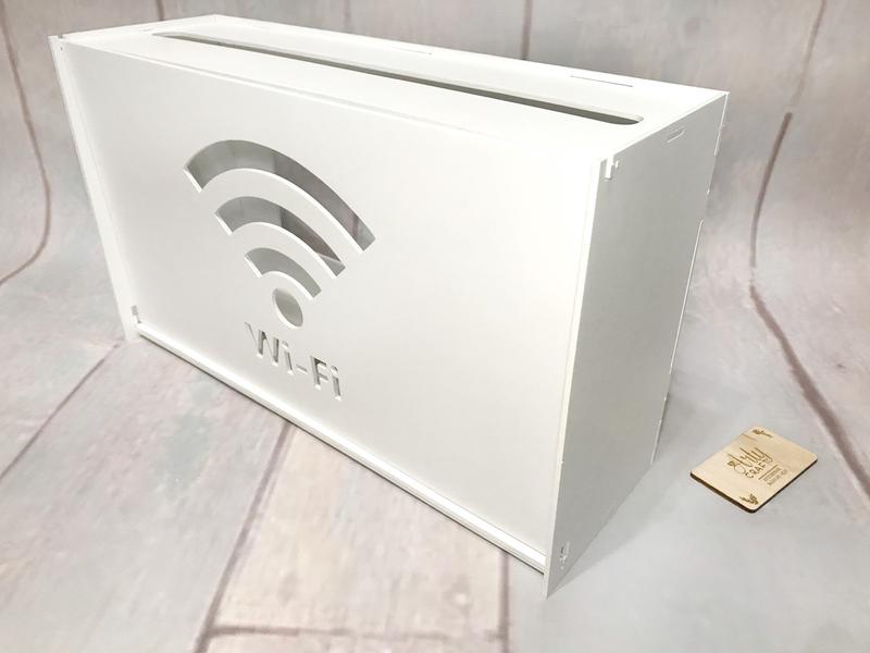Дерев'яна коробка для роутера на стіну "Wi-Fi" 45х25х15 см.