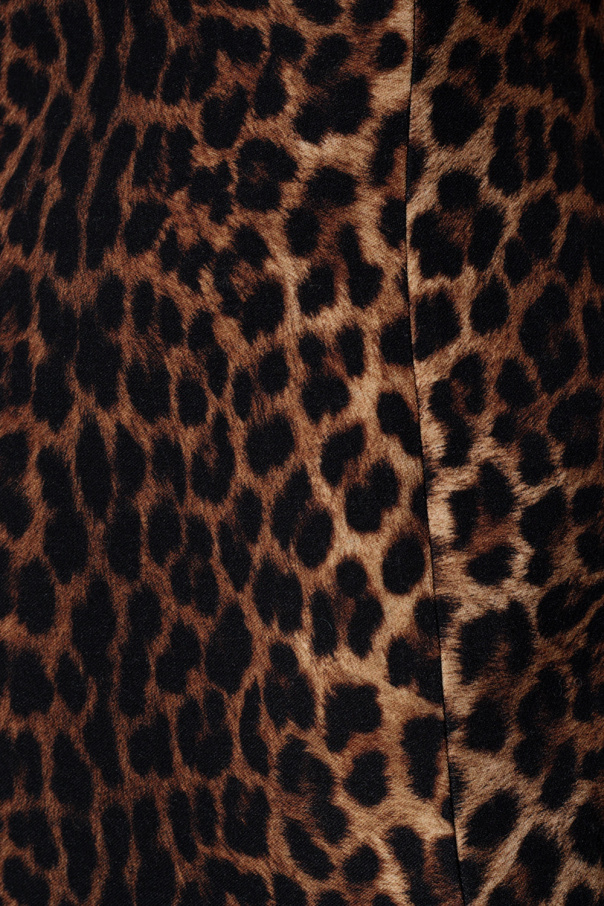 Brown and black off-the-shoulder dress from Michael Kors. Crafted from wool, this garment features a concealed back zip, animal pattern and a slit on the front.