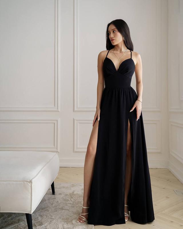Зроблено в Україні?:Виробництво ,Матеріал:Шовк ,Особливості моделі:З розрізом на нозі ,Силует:З відкритою спиною ,Особливості:На випускний , Коктейльне ,Сезон:Літо , Осінь , Весна , Демісезон ,Довжина:Максі ,Стиль:Вечірній , Романтичний , Святковий ,Опис
