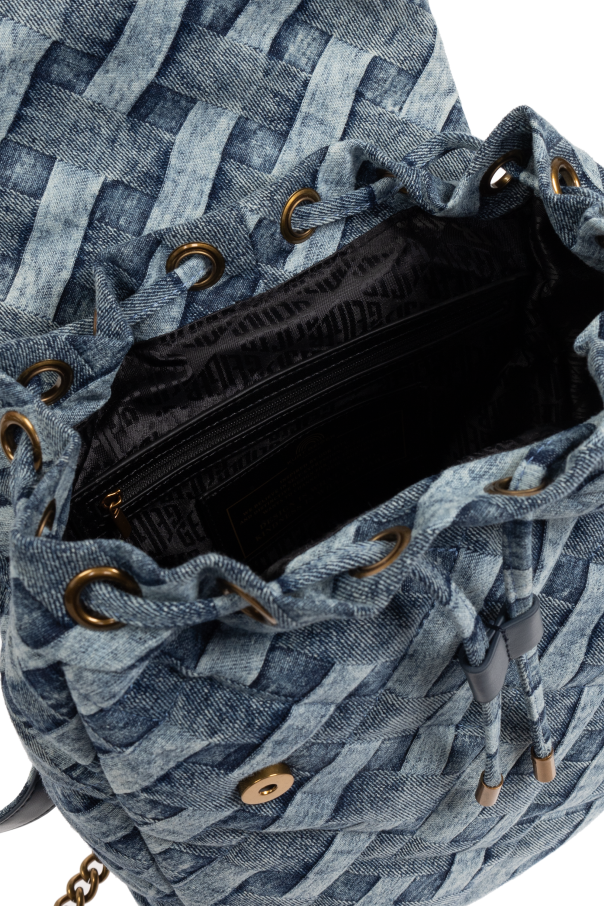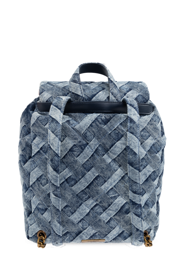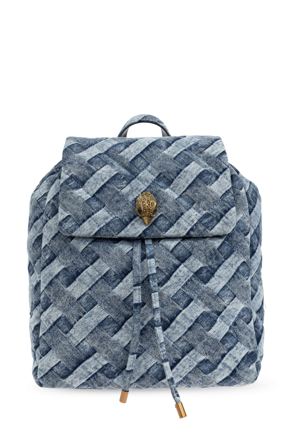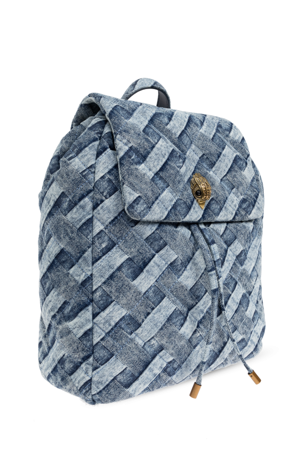Introducing the Jeansowy Backpack \'Kensington\' from the exclusive collection by the illustrious designer Kurt Geiger. This masterpiece is distinguished by its denim-like texture and captivating blue hue, exuding sophistication and modern flair. The backpack boasts a classic rectangular shape with a signature woven pattern that elevates its unique style. A golden shell-shaped clasp adorns the flap, epitomizing luxury and elegance. The interior reveals a sleek black lining adorned with prints, alongside zippered compartments for unparalleled practicality. Expertly crafted with adjustable straps and a handy top handle, this accessory harmoniously combines style and functionality. Golden metal eyelets and magnetic closure add a refined touch, ensuring durability and ease of use. Why Choose This Product? Exclusive design by renowned designer Kurt Geiger. Luxurious golden shell clasp enhances elegance. Practical interior with zippered compartments. Adjustable straps for personalized comfort. Perfect fusion of contemporary style and utility.